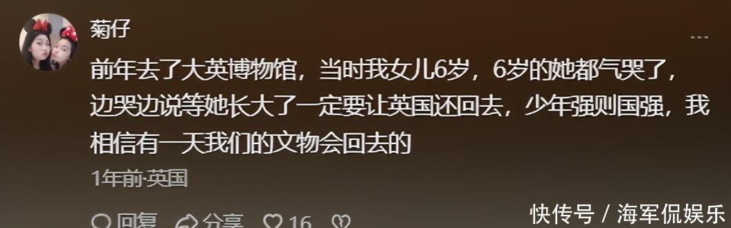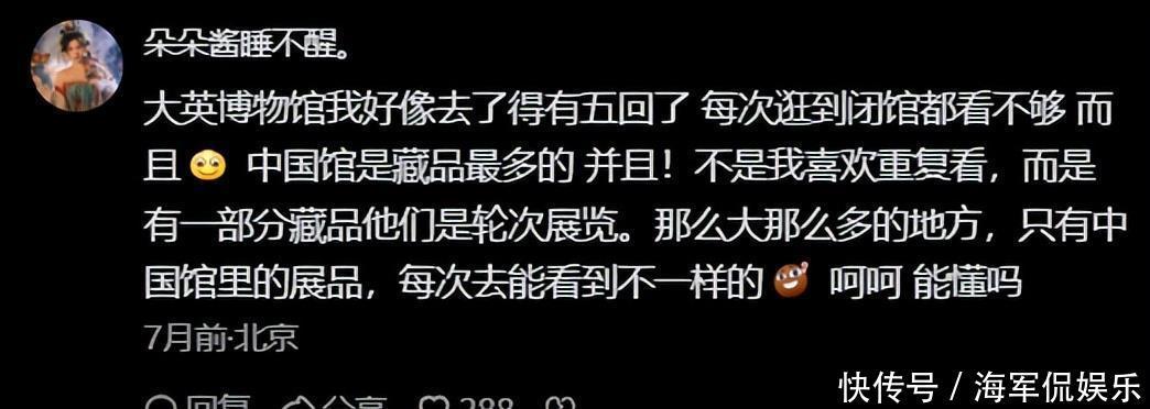 在网友看来,这迷漫是土匪逻辑,英国抢走了文物,然后把文物看成念战利品相通摆在展厅,当前这位女星果然公开可贵大英博物馆,于是此言一出,有网友就坐不住了。
