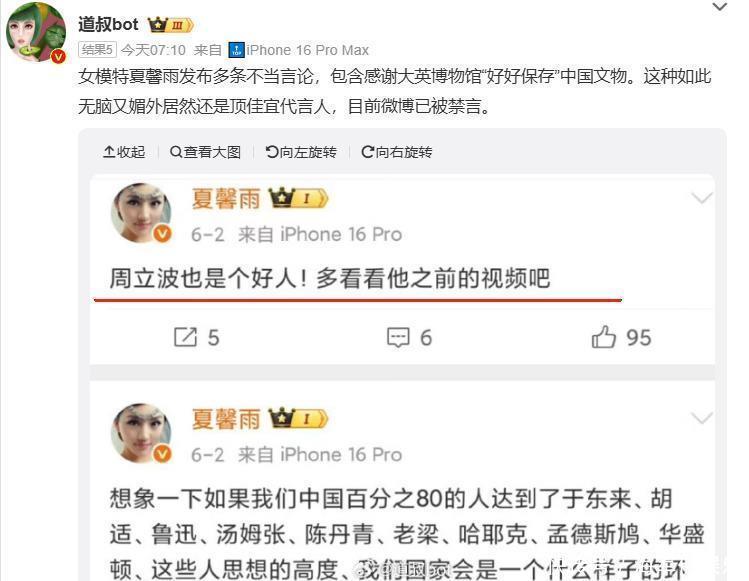 力挺“劣迹艺东说念主”有网友发现,6月2日夏馨雨还发文默示周立波是个好东说念主,但愿大师不要对他产生诬陷,这下网友们就更坐不住了,大众皆知,周立波在被封杀前颠倒爱发表失当言论,是以他一直饱受争议。