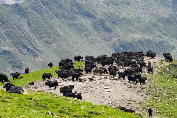 跟着气温升高,牦牛往更高的山上迁徙,举止范围特等海拔4000米,因此牧民要徒步攀升1000米以致更高的高度。
