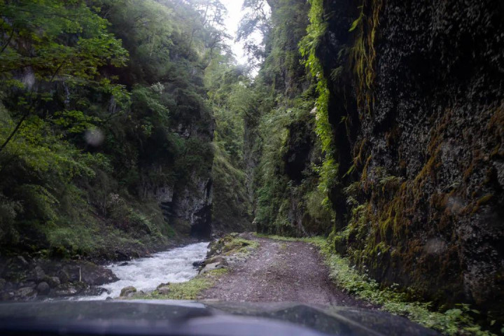尽管道路颤动,但通盘闲静是真好。晶莹晶莹的溪水一齐相伴,长满苔藓的魁伟树木相继而至,千峰万壑的瀑布来迎去送,一线天峡谷逼仄险峻……统统的闲静王人在穷困冲淡行程的困顿。
